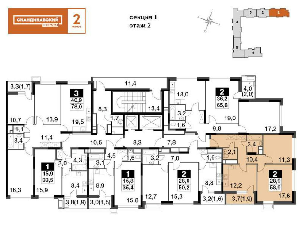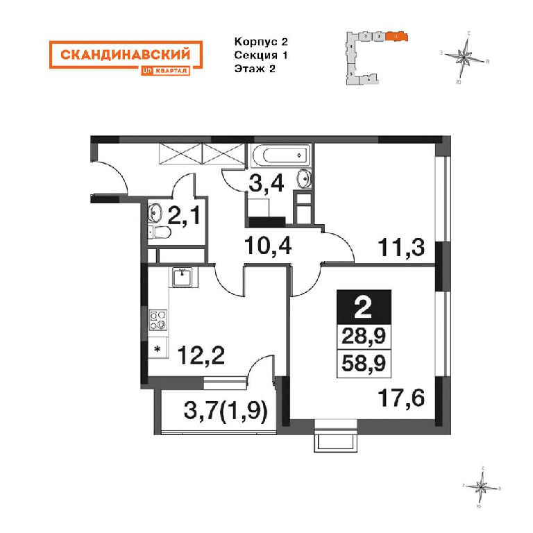 Продаётся 2-к квартира номер 6 общей площадью 58.9 кв.м. на 2-м этаже 16 этажного здания. Без отделки. Цена с учётом скидки.