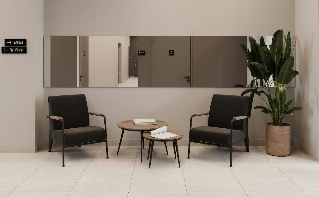 В 10-минутной транспортной доступности Ашан, Леруа Мерлен, Selgros Cash & Carry, ТРЦ Весна и ТРЦ Июнь, фитнес-клуб World Gym.