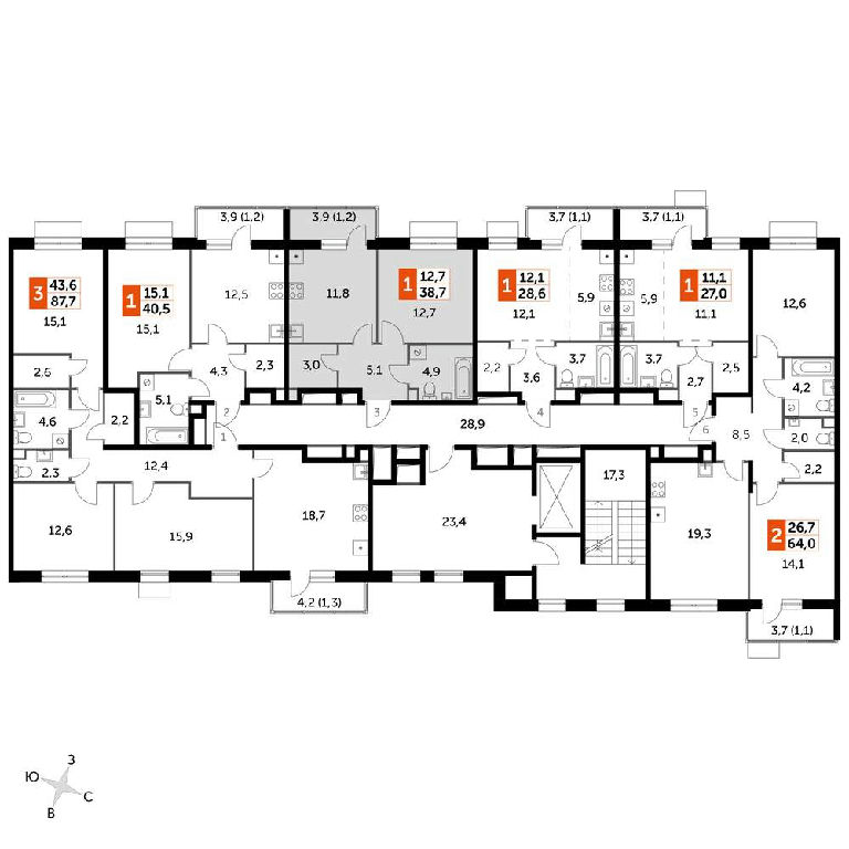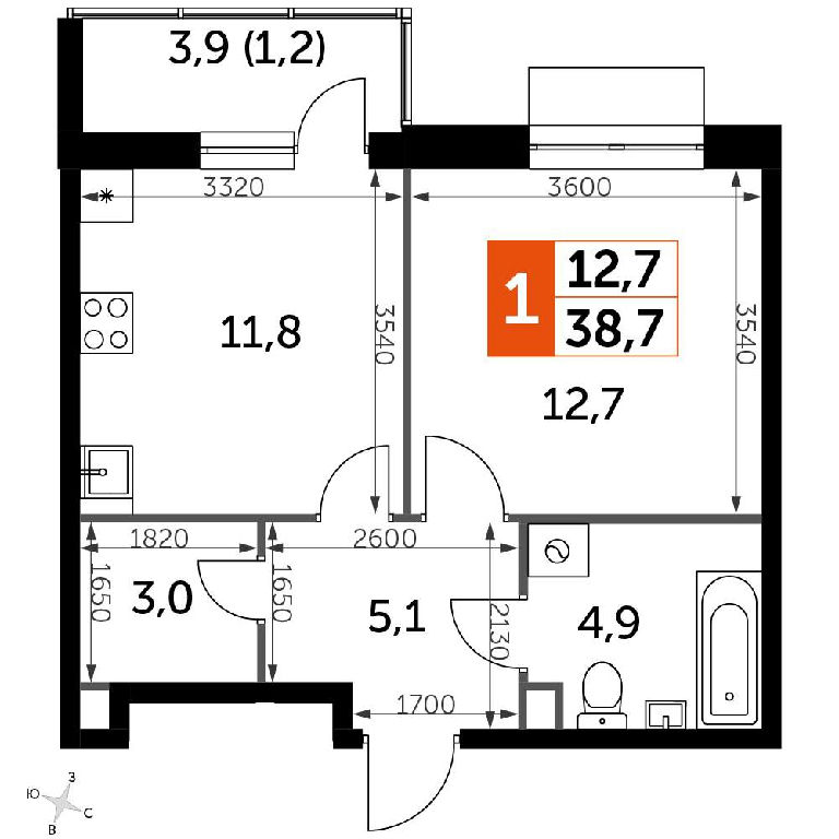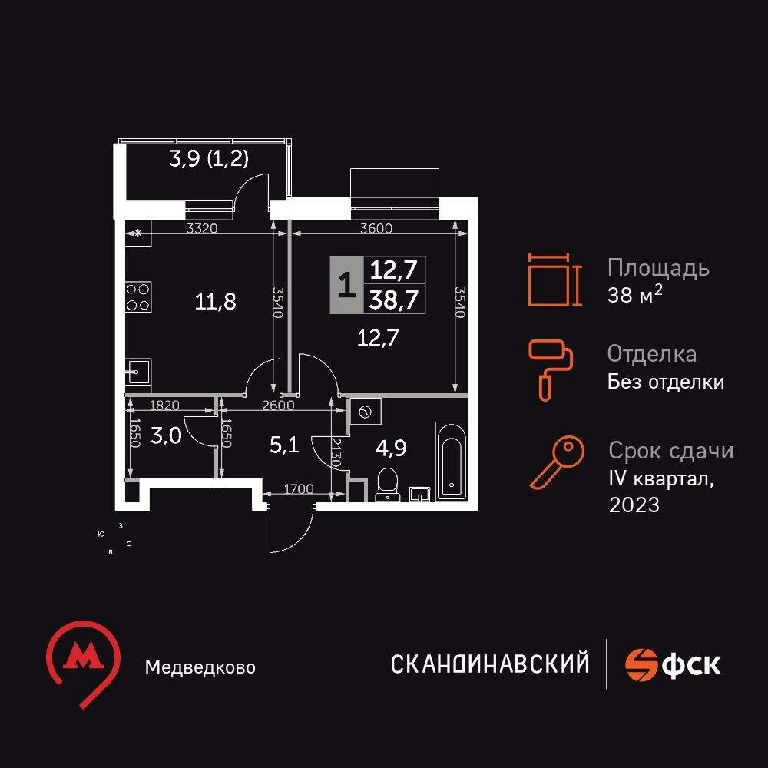 Продаётся 1-к квартира номер 59 общей площадью 38.6 кв.м. на 5-м этаже 9 этажного дома. Без отделки.